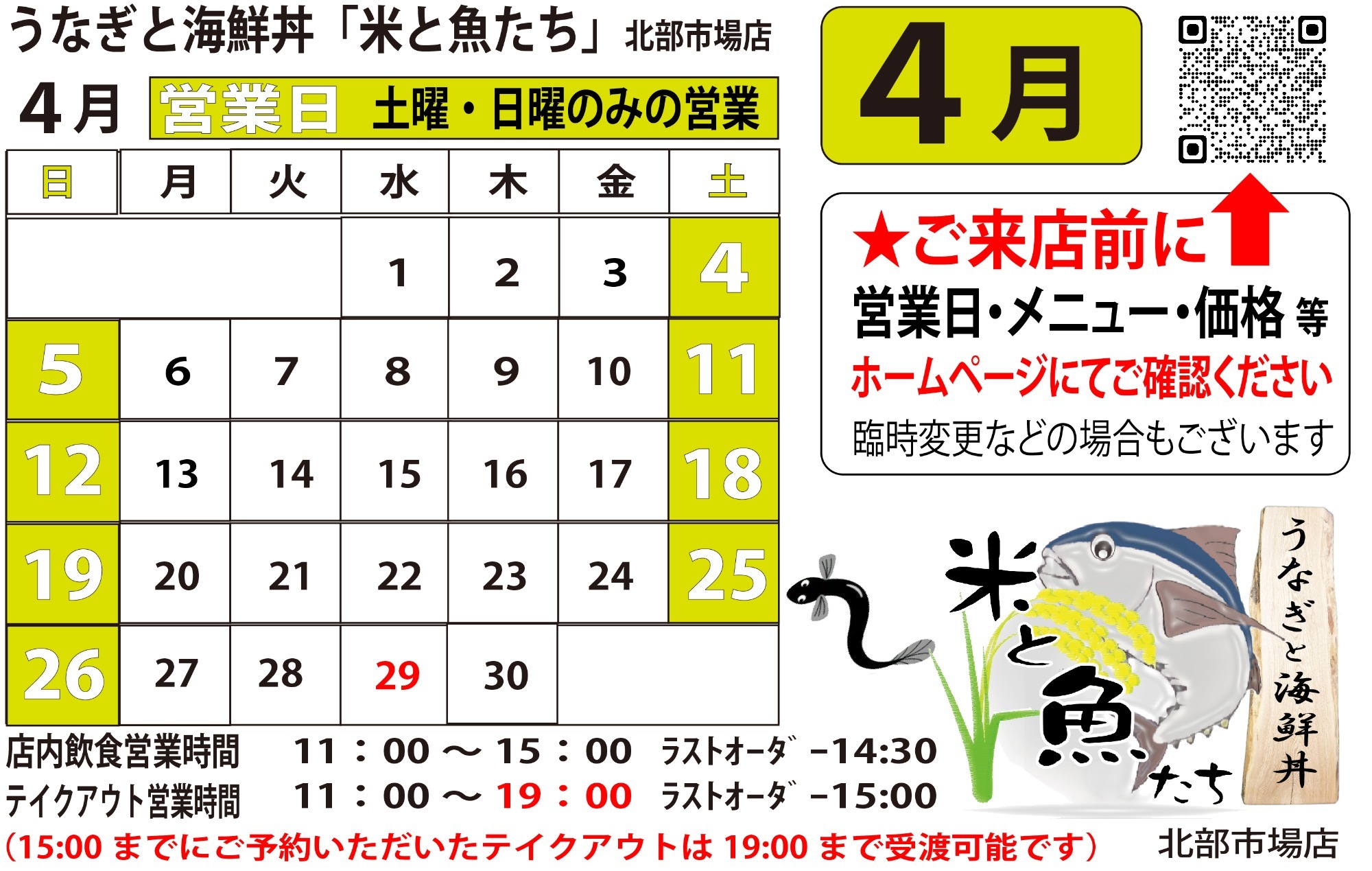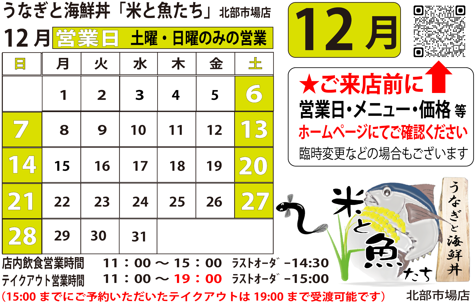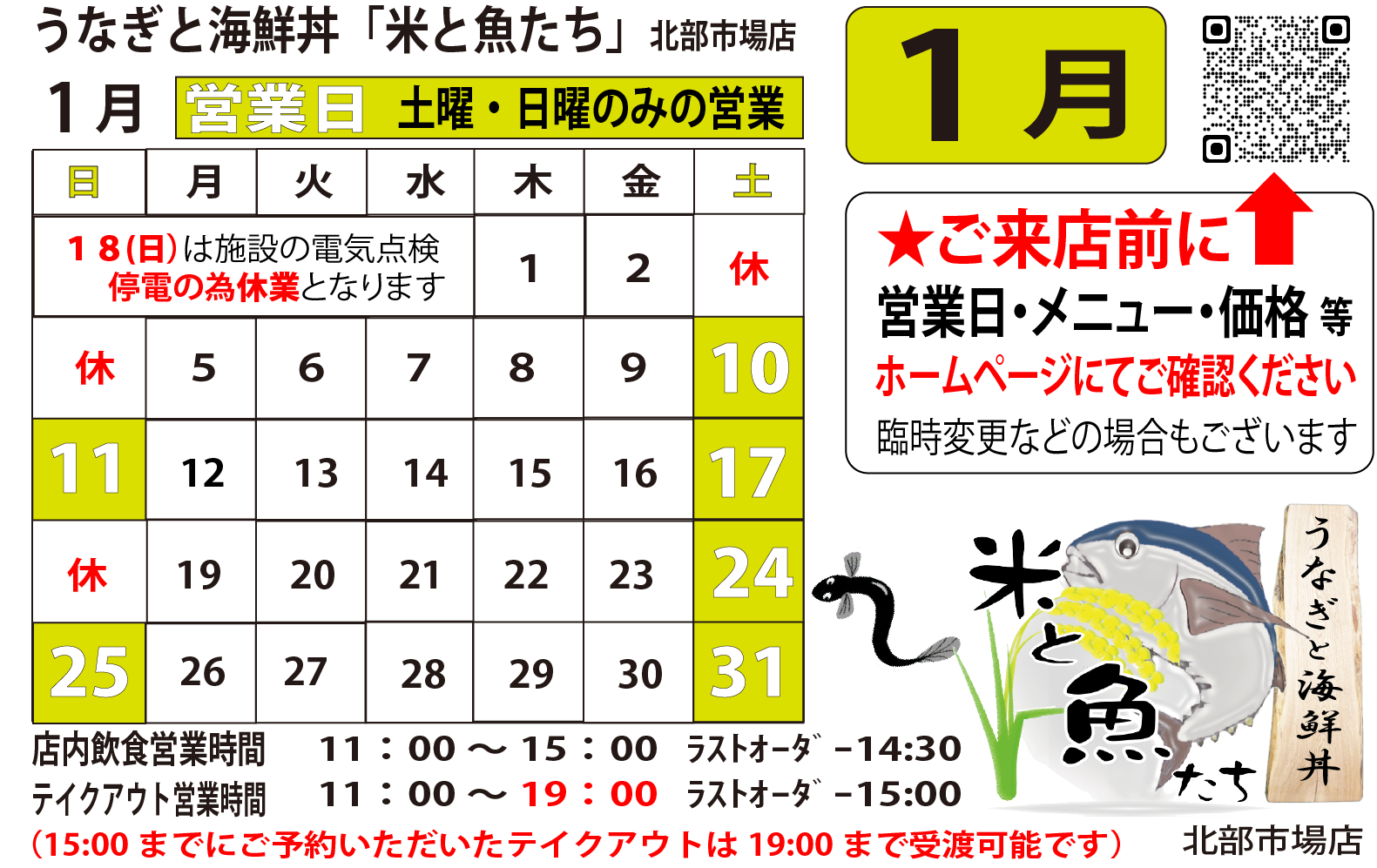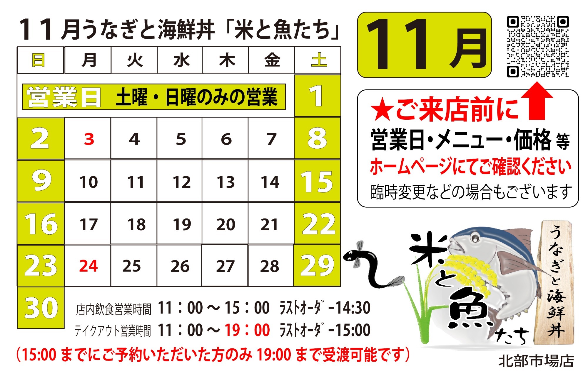 ★うなぎと海鮮丼「米と魚たち」は土曜・日曜のみ